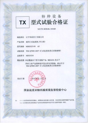 LDP電動單梁型式試驗合格證